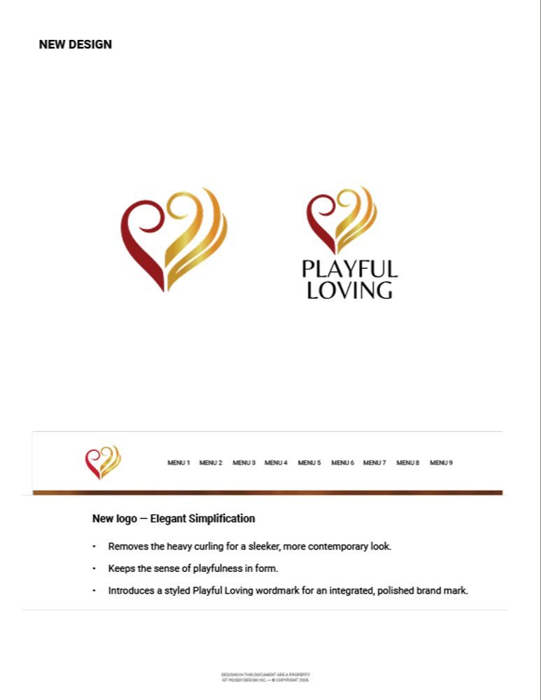 The redesign focused on elegant simplification. Rather than replacing the symbol, the heart-V was refined to allow more light, space, and breath. Lines were softened, visual weight was reduced, and balance was restored. A custom wordmark was introduced to create a unified, polished brand mark that works across digital and print. The updated colour palette — gold, crimson, and silver — supports themes of authority, intimacy, and clarity without visual noise.